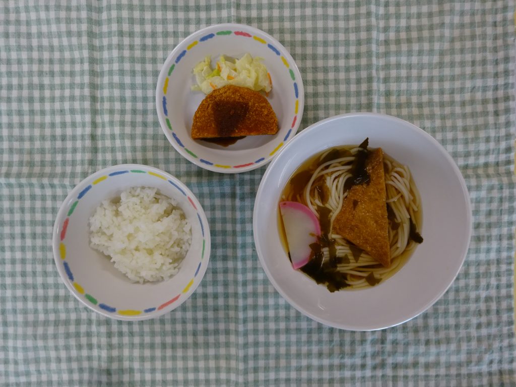 今日はみんな大好き温麺汁でした。「いただきます」をすると一番最初に食べるお友だちが多かったです。