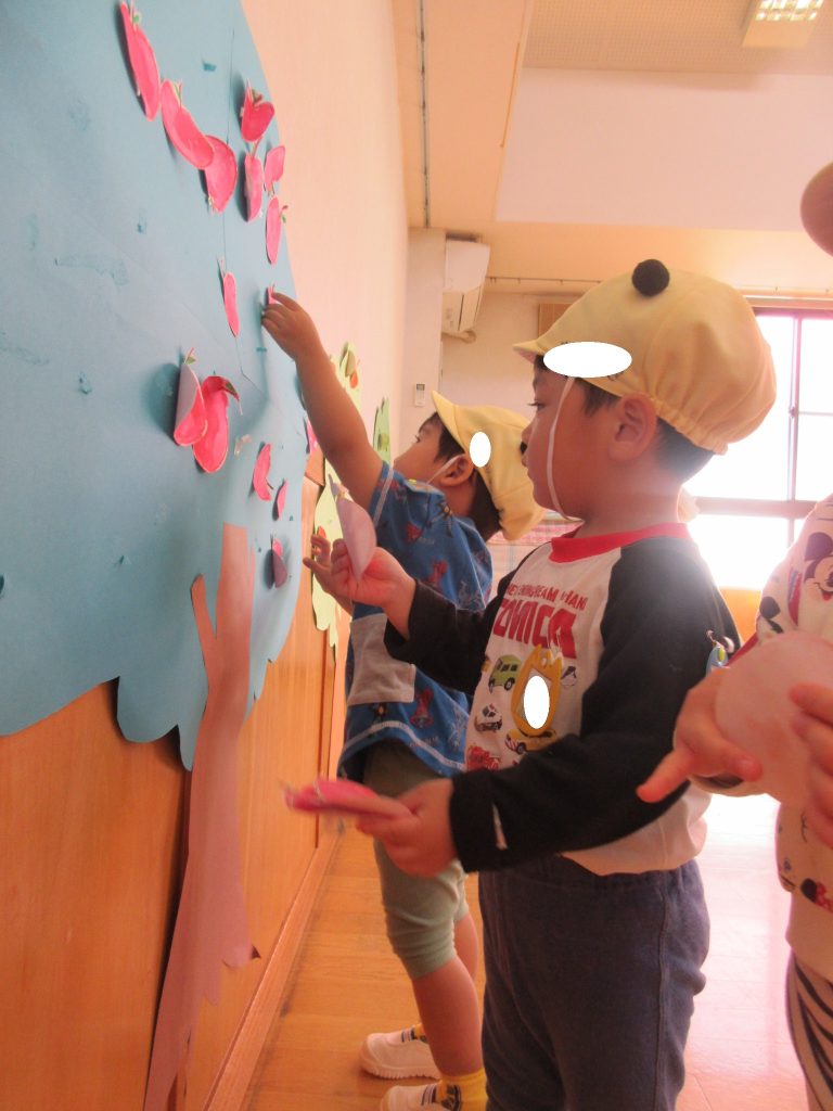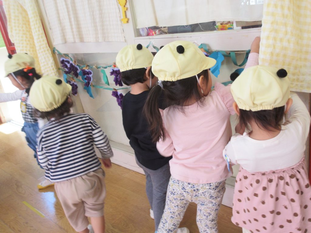 いちご組では、指先を使ってあそんでいます。丸窓の壁が磁石になっているので、マグネットを貼ったり、はがしたりしています♪