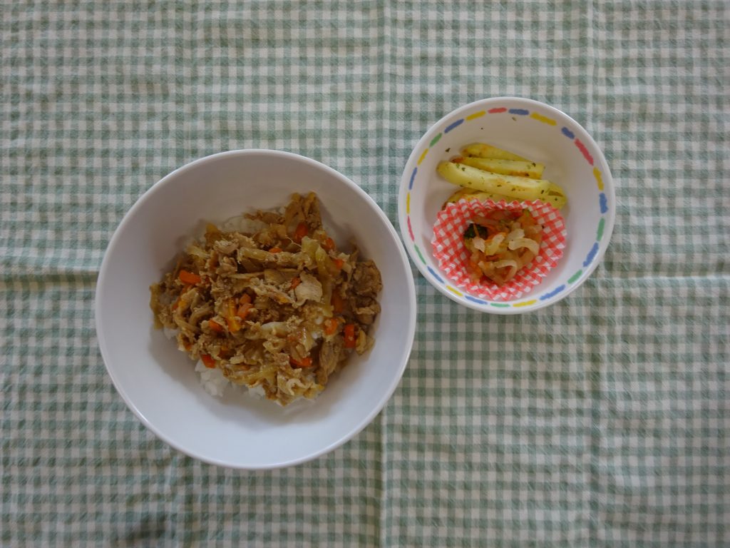 豚丼のお肉のおいしい汁がごはんにしみて、みんないっぱい食べました。