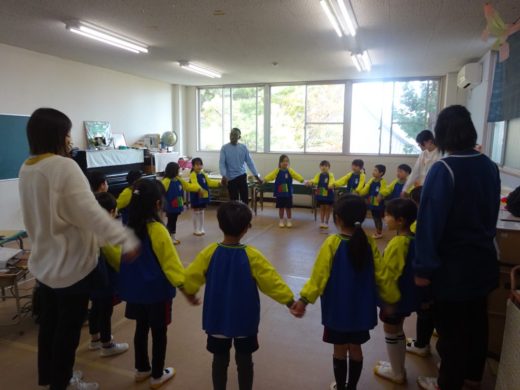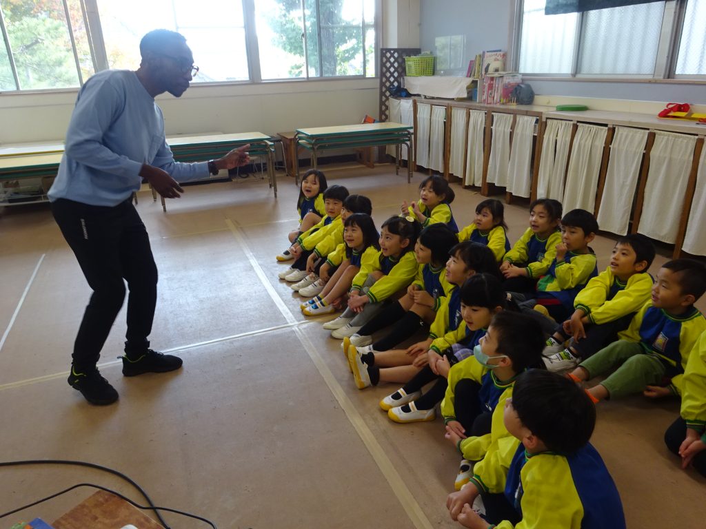 今日は英語で遊ぼう(ALT)の日でした。イノセント先生に自己紹介の仕方を歌にのせて楽しく教えてもらいました。次回11月に予定しています。