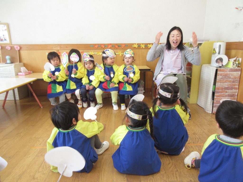 お面やステッキを作って、歌に合わせて遊んでいます♪