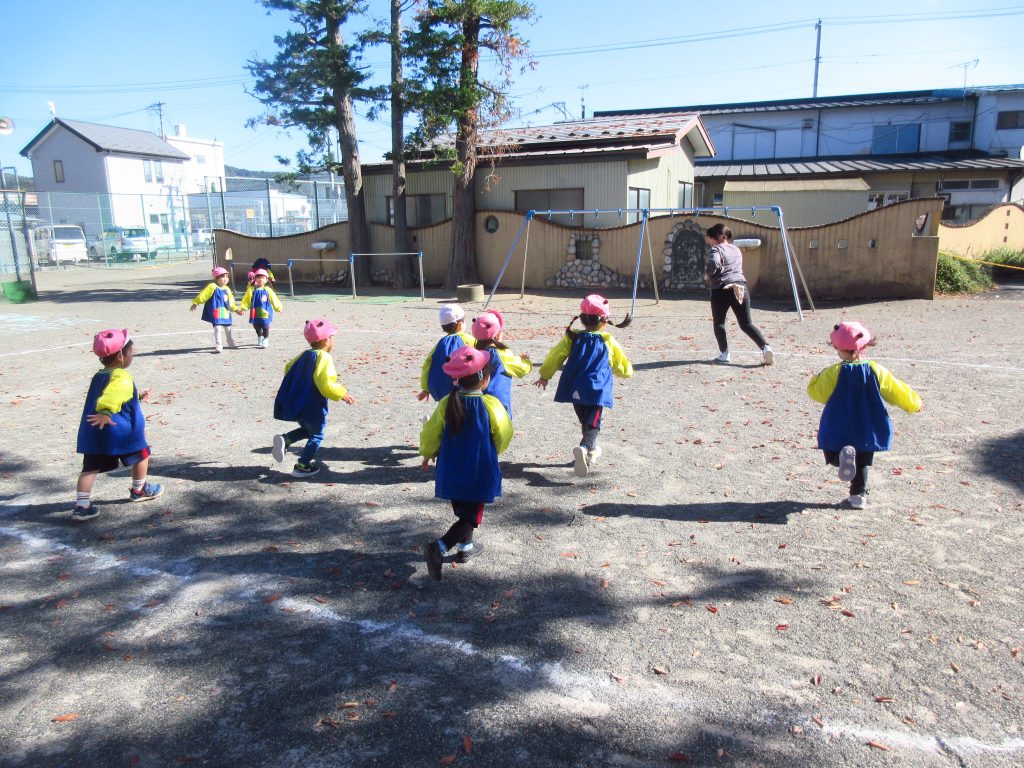 しっぽ取りをして遊びました!お外は少しひんやりしていましたが、たくさん走って体もポカポカになりました。