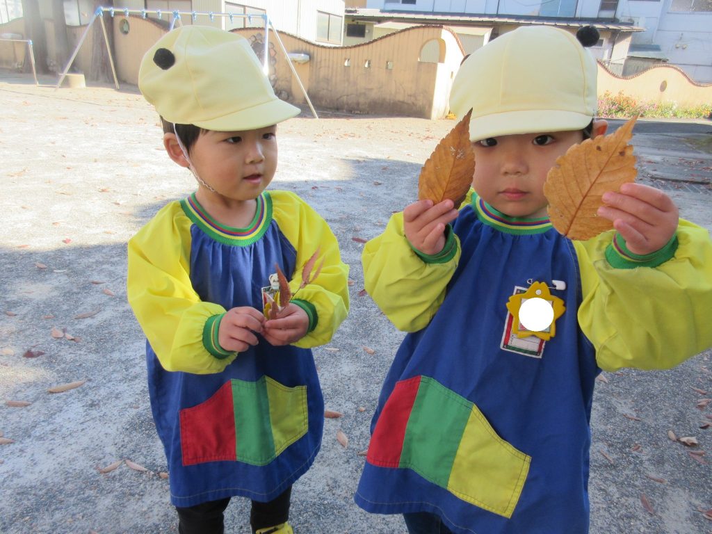 外あそびの時に落ち葉を見つけました。