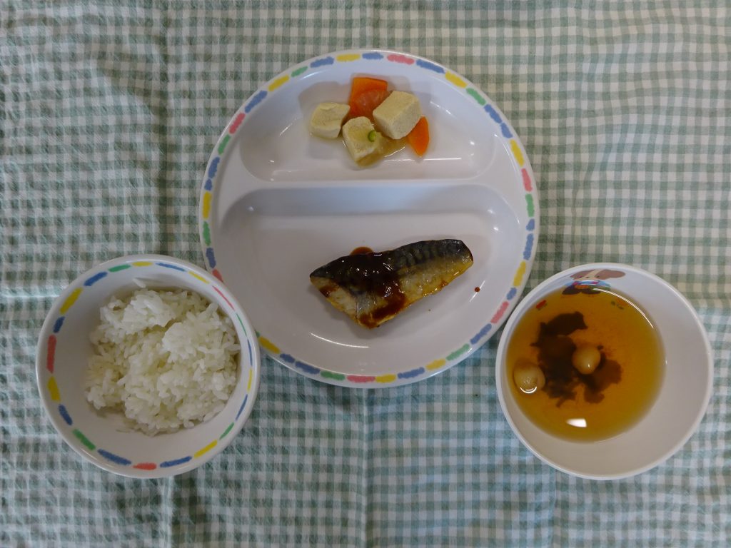 サバの味噌煮、タレもおいしくご飯と一緒に食べました。久しぶりのすまし汁も大好きなので、おかわりする子も多かったです。