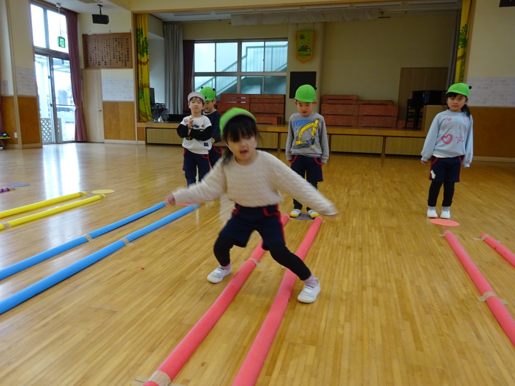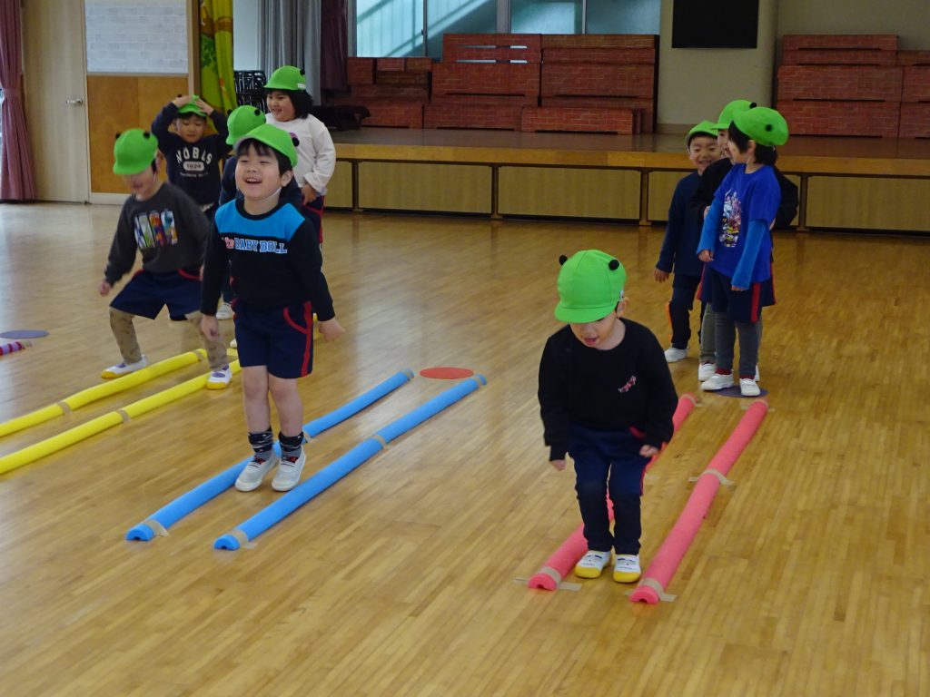 今日は堀内先生の体育教室でした。グーパージャンプに挑戦!足を閉じたり開いたり、バランスをとり最後まで跳べた!が嬉しかったです。