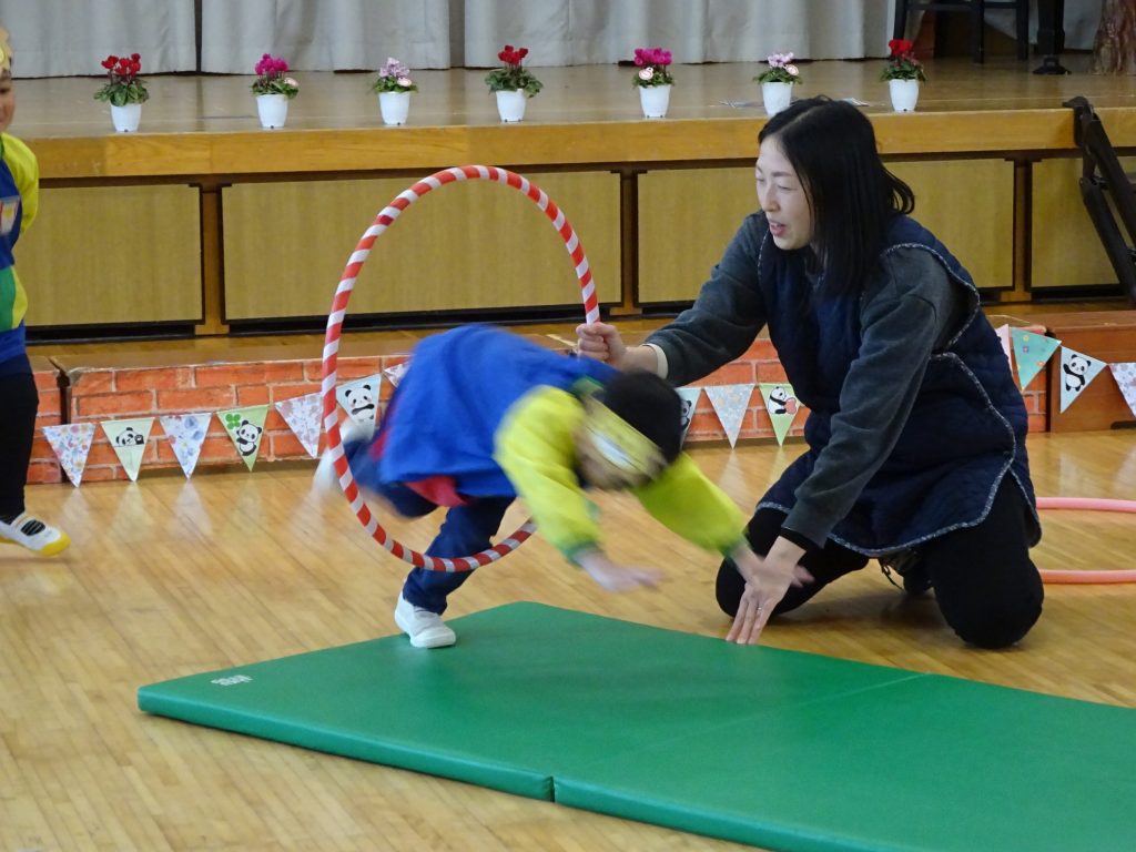 少しドキドキでしたが、幼稚園の誕生会に参加してきました。旗を振って、サーカスの応援をしました。