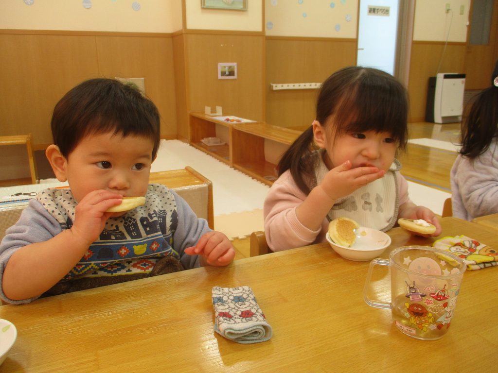 今日はお祝いにパンダ焼き印付きの人参ホットケーキを食べました。12月生まれのお友だち、お誕生日おめでとうございます。