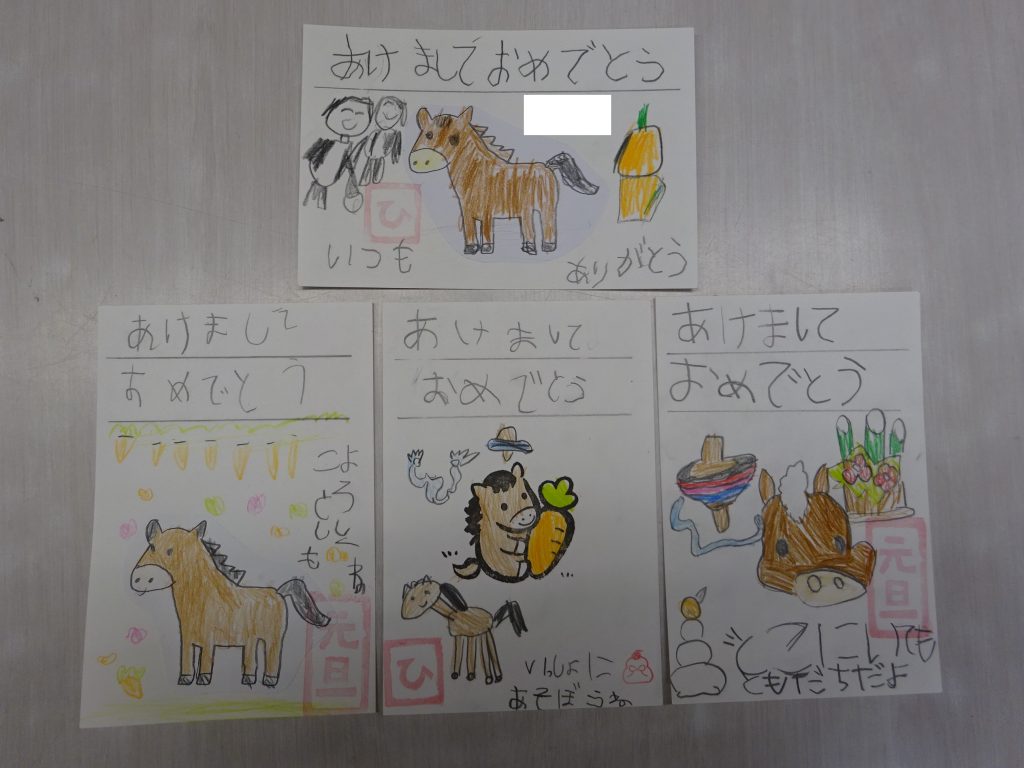 By kazamagakuen2025年12月18日園全体 《うちゅう組》 年賀状を書きました。1月1日に届くことを楽しみにしているみんなです。思い思いにメッセージやイラストを書いて楽しみました。 《のはら組》 足きり跳び、長縄跳びで遊んでいます。縄がきたらジャンプ!足元をよ~く見ながら、跳べた回数を数えることも楽しいです。 《もり組》 のはらぐみさんと一緒に、だるまさんが転んだ♪で遊びました。おにが振り向く前にゆっくり近づき、捕まらないで逃げよう!!と元気に体を動かしました。 《ひよこ組》 図書ボランティアの方が来て、図書の読み聞かせをしてくれました。大きな絵本に目を輝かせ、お話に耳を傾けていました。