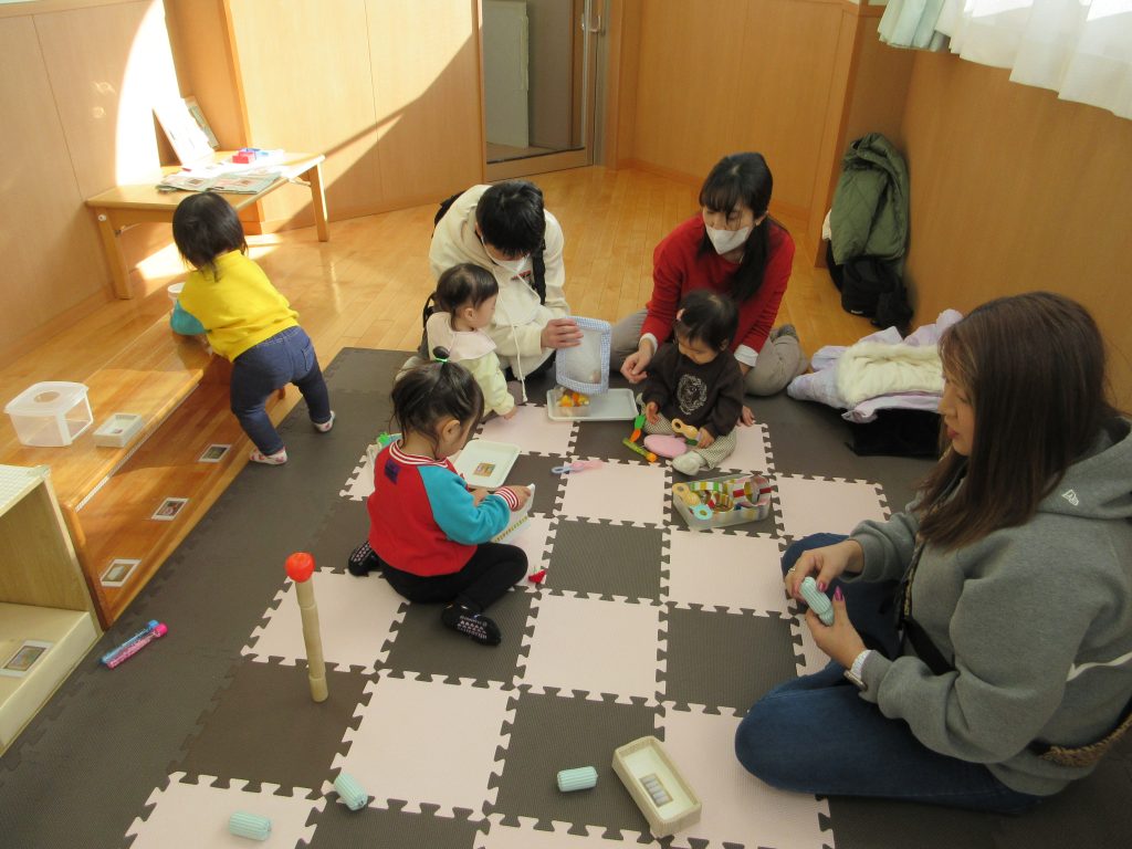 らんらんコース。好きなおもちゃに自分から手をのばして、さわってみよう!持ってみよう!としているお友だちが増えました。