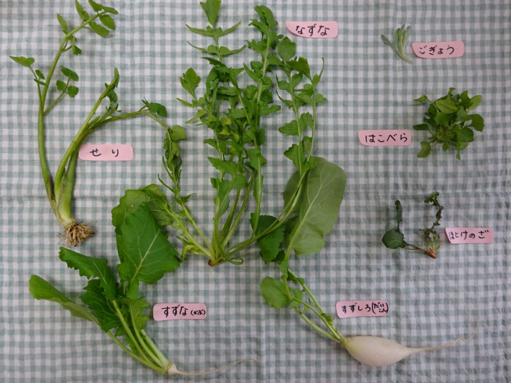 By kazamagakuen2026年1月6日今日の給食 今日の給食です。 今日の照り焼きチキンは、やわらかくホロホロでした。寒かったのもあり、味噌汁が人気で完飲しました。 明日は七草です。春の七草(せり・なずな・ごぎょう・はこべら・ほとけのざ・すずな・すずしろ)を刻んで入れたお粥を食べ長寿や無病息災を願う伝統行事です。現在では、正月料理のごちそうで疲れた胃腸を休めるという意味も含まれています。ぜひ、おうちでも七草粥を食べ、1年元気に過ごしましょう。