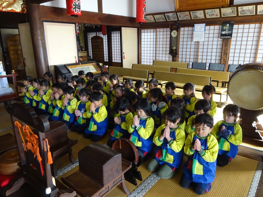 本堂にも手を合わせに行きました。4月から小学生のうちゅう組さん。手を合わせる姿も頼もしいですね。
