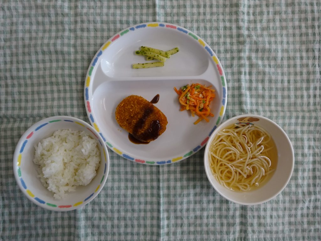 キャロットサラダはツナと和えてあり、食べやすかったです。コロッケ・マカロニ・温麺と人気メニューだったので、みんなもりもり食べていました。