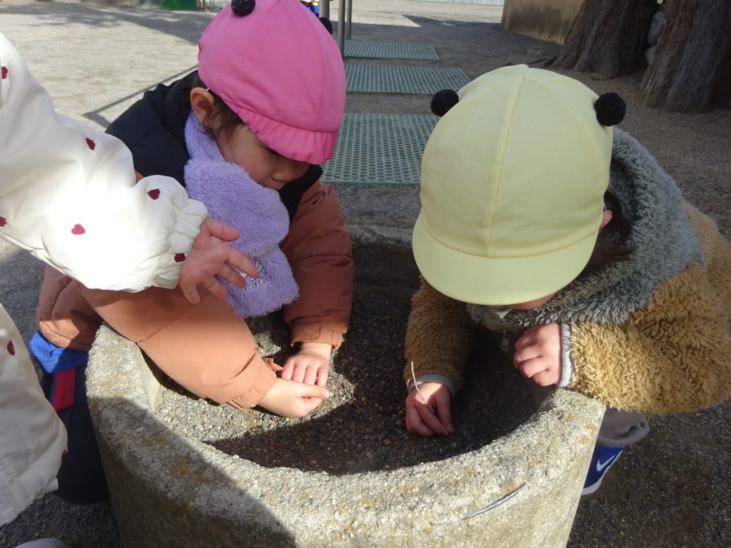 外では、ひよこ組さんに“手伝ってあげる?”と聞いたりして、ちょっぴりお兄さんお姉さん気分のお友だちもいました。