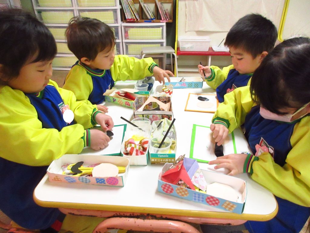 今日まで運動参観でした。お家の方と一緒に体を動かすことができて楽しい時間になりました。お部屋の中では、ひな人形を作ったり、1年生カレンダーを作っています。カレンダーも出来上がりはじめています。完成をお楽しみに・・・