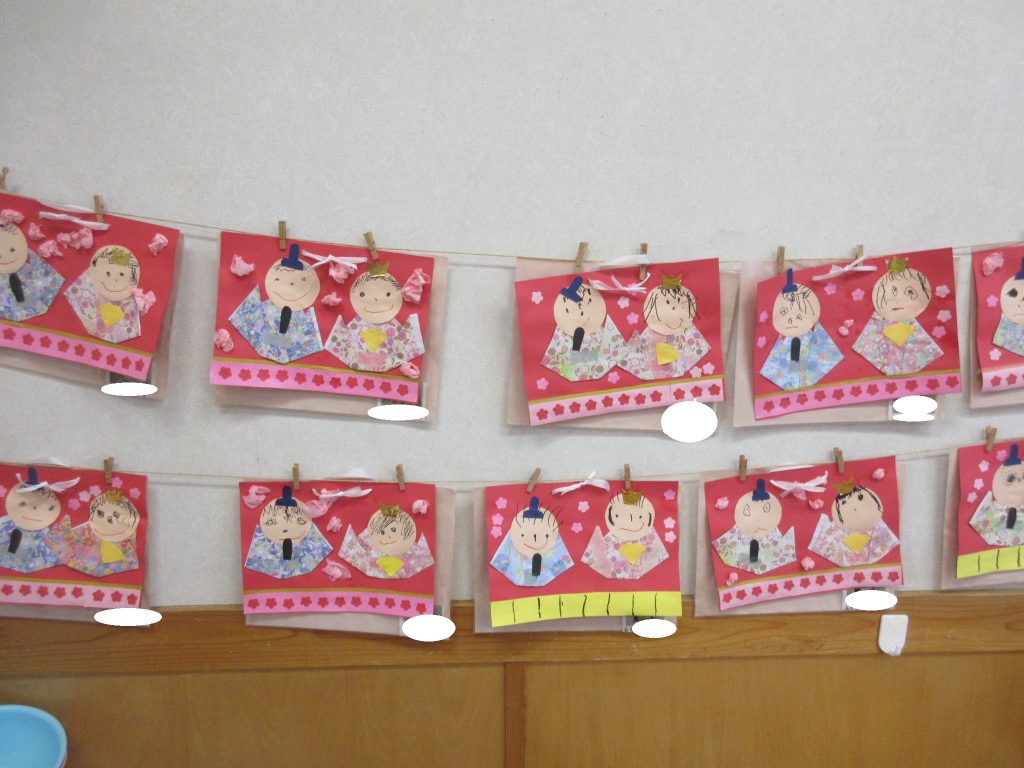 もうすぐひな祭り、かわいいお雛様が並んでいます。ひな祭り会が楽しみです♪