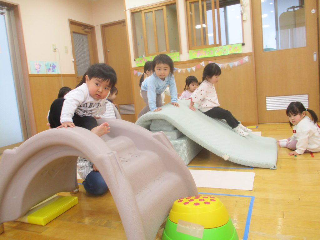 今日は、いちご組のお友だちがみかん組にあそびにきました。一緒におもちゃであそんだり、動コーナーのすべり台など楽しんでいました♪これから進級に向けて、お部屋にあそびに行ったり交流していきます。