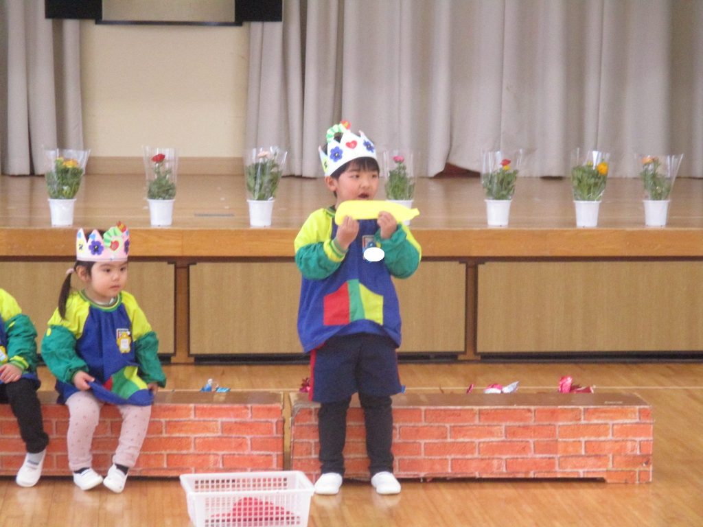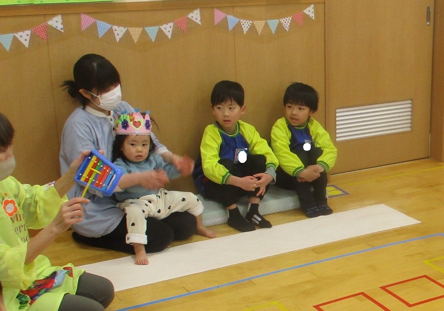 今年度最後の誕生会。みんなからの待ちに待った“おめでとう!!”の言葉に笑顔が見られた誕生会でした。