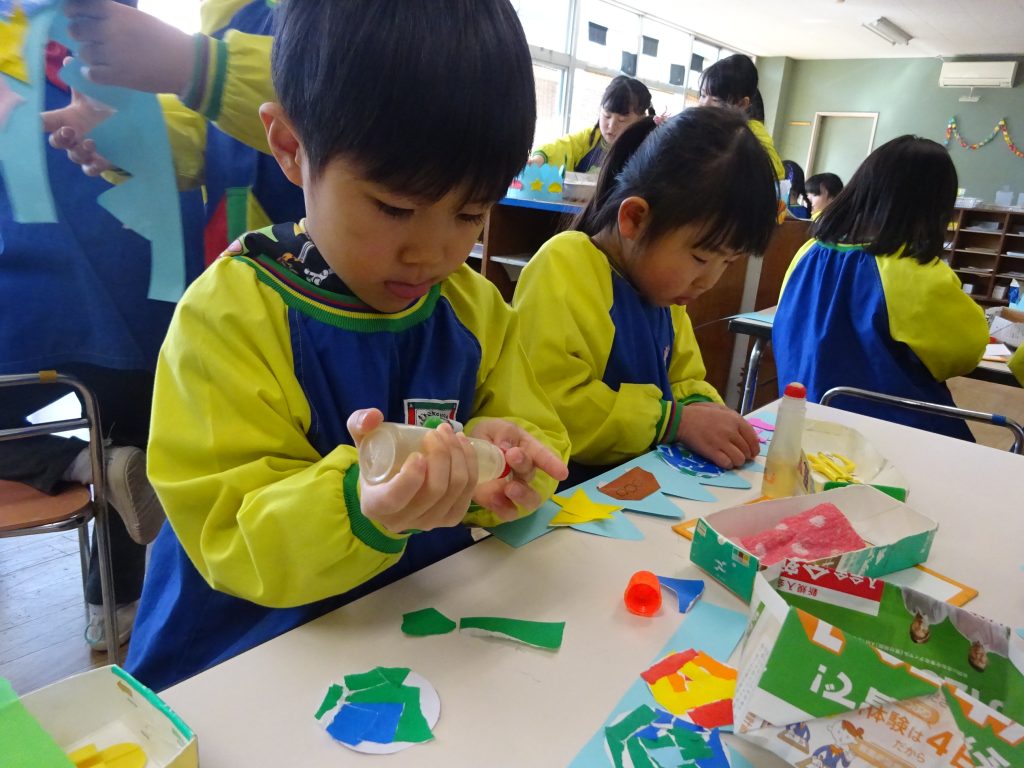 うちゅう組進級を楽しみにしながら冠づくりをしています。