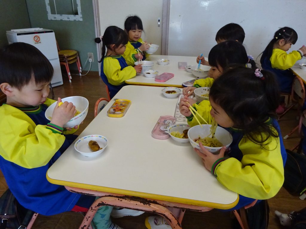 今日の給食はラーメンなんだよ~!と朝から楽しみにしていたもり組さん。
