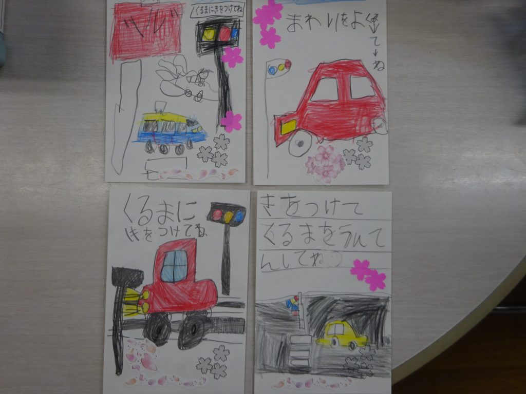 おじいちゃん、おばあちゃんに交通安全をお知らせするハガキを書きました。届くのが楽しみです。