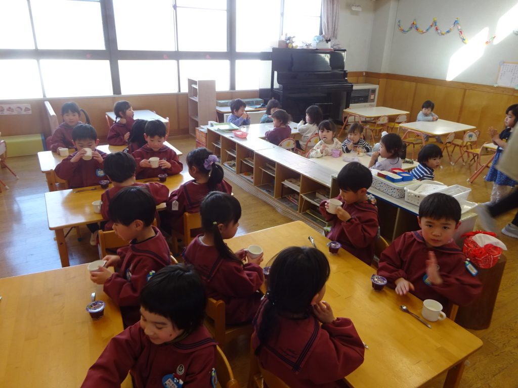 朝から新しい部屋で過ごしました。自分のロッカーの位置を確かめたり、新しいおもちゃを手に遊んだりしました。そして、たくさん遊んだ後は、ランチルームで給食をもりもり食べ、おやつも食べました♪